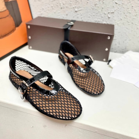รองเท้าส้นเตี้ยสำหรับผู้หญิงรองเท้าบัลเล่ต์ตาข่ายแบบกลวงพับได้สำหรับฤดูร้อนรองเท้าลำลองสำหรับผู้หญิง Mary Jane