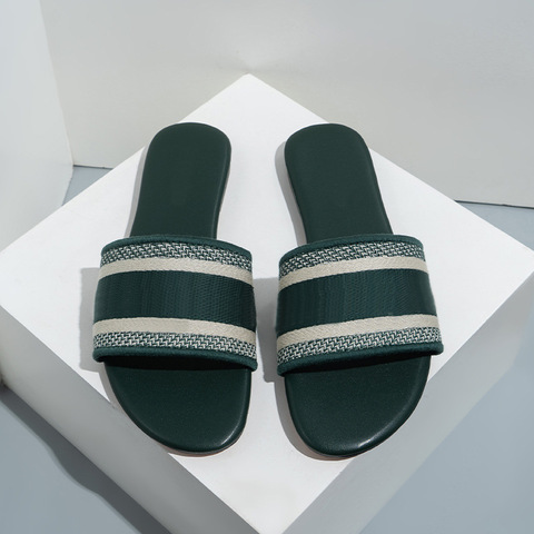 รองเท้าแตะปักลายสำหรับผู้หญิงและผู้หญิงรองเท้าแตะแบบแบนสำหรับกลางแจ้งสไตล์ใหม่สำหรับฤดูร้อน