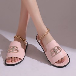 Vacaciones de verano PU suela de goma blanda zapatillas planas playa a prueba de agua fuera de la puerta mujeres señora chica